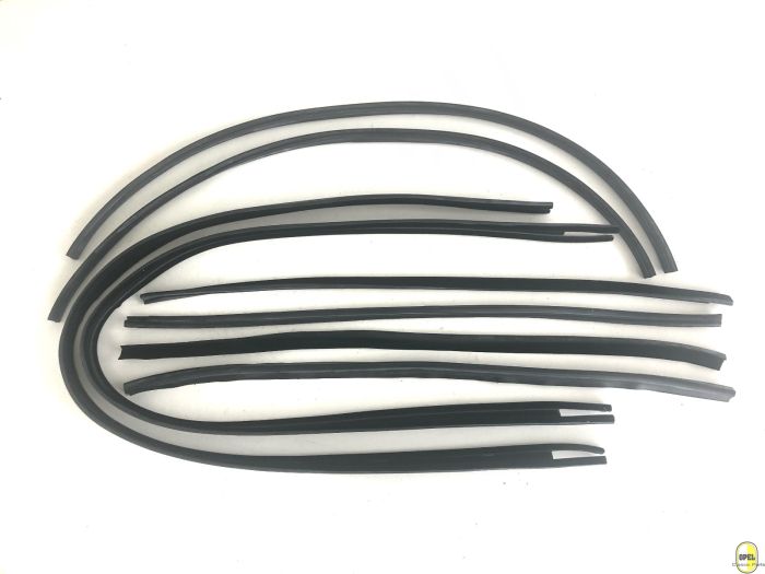 Set includes: door window run channel, channel in door and window shaft sealing outside and inside for both doors. Can als be used in shortened form for Coupe and 4 door model.
